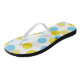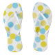 Modern and whimsical flip flops featuring blue and yellow large dots pattern. Fun and unique flip flops that will be a perfect accent to any outfit. Other colours are available.