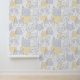 Blue Yellow Mid-Century Abstract Cat Pattern Wallpaper