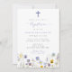 Blue & Yellow Pansies Wildflowers Baby Baptism Invitation perfect for spring featuring a cross modern calligraphy.