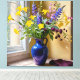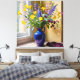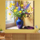 Blue Yellow Purple Blooms Art. Bring peace to any space with this stylised watercolour still life featuring a vase of flowers in restful blues, yellows, and purples. Perfect for wall décor.