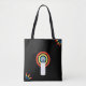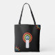 Modern elegant stylish three feathers and blue, yellow and red candle flame on black Tote Bag.