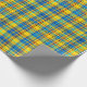 Wrapping Paper: Rustic gifts wrapping paper featuring yellow and blue plaid pattern laced with red, black colours. Tartan inspired by Ukraine colours.