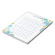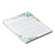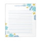 Floral notepad with flowers and leaves in blue and yellow and turquoise. The notepad is lined. Add your name in blue.