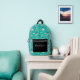 Fun backpack with a vintage, sputnik, mid century modern, abstract pattern in shades of blue, yellow, white and black.