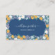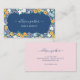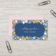 Beautiful floral business card in deep blue with your name in a pretty, thin script and your title in elegant letters framed by a myriad of yellow flowers, white flowers, pink flowers, and blue flowers. On the pale pink other side of the card, add your name and contact info. Wonderful business card for a makeup artist, hair stylist, lash artist, nail artist, event planner, interior design and much more.