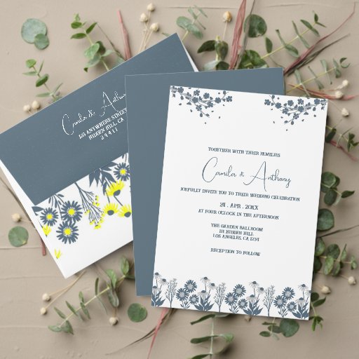 Blue Yellow Wildflower Floral Boho WeddingDesigned by Dia Sha