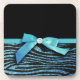 Blue Zebra and ribbon bow graphic Coaster