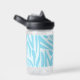 The bottle looks even better in real life. The ice cubes I put in lasts all day! I have my bottle with me all the time. It's summer and having something cold to drink feels amazing. With this bottle I always have something super cold. I have only tried the hot drink once and it lasted a long time as well. The color blue is a navy blue and the white printed on it is vibrant. It printed perfectly. I love my personalized smile water bottle.
