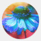 Blue Zinnia Flower Abstract Distressed Classic Round Sticker
