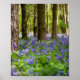 Landscape photo of a woods full of pretty bluebell flowers in the UK.