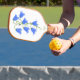 A pickleball paddle with a beautiful bluebell flower image. The background, image and text can be personalized. Original artwork by W.B.