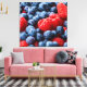 This design features a close-up image of raspberries and blueberries, which are healthy fruits. Raspberries are red and blueberries, as the name suggests, are blue.