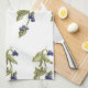 This kitchen towel has a half drop repeat pattern of my coloured pencil rendering of blueberries on a vine stems with leaves, blues and greens on a white background. Luscious summer fruit. Art by Kristie Hubler.