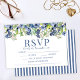 Elegant watercolor blue floral blueberry autumn fall wedding RSVP response cards.