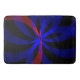 This custom blueberry color center geometric accent bath room floor mat features modern red blue circles merged in an abstract center design. Available in small, medium and large size.