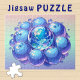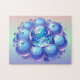 Relaxing Puzzle - Cosmic Blueberry Earth Planet comic book style aesthetic Design - This fantasy soft pastel Image is ai generated and shows a bunch of Blueberries, in the middle is the blue planet Earth. The main colours are different shades of blue, violet, hues of light pink, lilac and green.