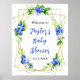 This beautiful and elegant welcome sign features watercolor blueberries, daisies and foliage. The text combines handwritten script and serif fonts for a stylish and modern look. This is perfect for a spring or summer rustic baby shower.