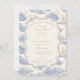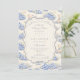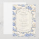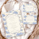 A sweet vintage-inspired design featuring delicate blue bows, soft striped detailing, and charming blueberry garden illustrations. Toile-style artwork with adorable animals and fruit baskets creates a classic storybook feel in a soft powder blue palette. The ornate central frame adds elegance while keeping the overall look light, refined, and timeless. Perfect for a baby shower with a gentle garden theme and a touch of traditional charm.