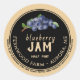 Watercolor blueberry illustration on black with kraft border; date and ingredients