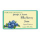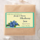 Bunch of ripe blueberries with leaves behind them are tucked into the left lower corner of this label with a background of pale yellow all surrounded by a border and background of moderate turquoise green which make this a perfect label to use on your jars of homemade blueberry jam or preserves. The text is in template form so you can change it to whatever you wish.