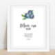 Cute baby shower invitation card featuring watercolor illustration of blueberries. The text says "a berry sweet baby is on the way." Matching items available.