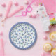 Watercolor blueberry paper plate with a dark dusty blue border.