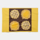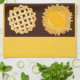 blueberry & pumpkin pies kitchen towel by Kristie Hubler, blueberry pie with lattice pastry crust top, and pumpkin pie with pastry leaf edge, perfect for Thanksgiving, fall, holiday, or just dessert!