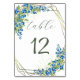 Rustic wedding table number decorated with blueberry branches in a botanical design. Created as a reception table number and wedding table plan, it suits countryside and outdoor wedding decor.