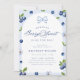 Celebrate a little one's arrival with this Blueberry Sweet Baby Shower Invitation, featuring a charming blueberry pattern and elegant arch design. The dusty blue watercolor details, paired with wildflower accents and a blue bow, create a modern yet timeless look. Perfect for a baby boy shower with a fresh and stylish touch.
