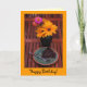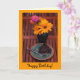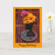This birthday card features a luscious freshly baked tart made with just picked blueberries! A vase of pink and orange zinnias and golden black-eyed Susans decorates the slats of the deck table which is still wet from a morning rainstorm. The image is repeated inside. You can customise the text to suit your needs.