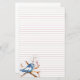 A lined stationery paper featuring a little bluebird perched in a tree with heart shaped leaves accented with tiny dots with pastel pink lines. Great for letter writing, journalling, and more.