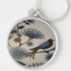 BLUEBIRD PERCHED ON TREE BRANCH WITH BLUE FLOWERS
