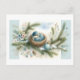 Bluebird Nest with Ornaments in Winter Pines Holiday Postcard