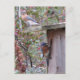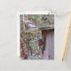 Postcard design features a mated pair of Eastern Bluebirds. The female is on the roof.