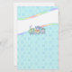 Adorable stationery features a toy train with a happy baby bluebird riding on it. Rainbow accents and lightly dotted aqua background. Matching pattern on card back. This stationery would work well for personal use and any child related business eg... daycare, babysitter or boutique.