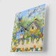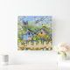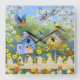 Bluebirds Goldfinches Birdhouses Flower Garden Square Wall Clock