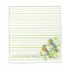 A green lined personalised notepad decorated with male and female bluebirds in a blooming Hawthorn tree in spring sketched with ink and watercolor. Inspired by the state bird and state flower of Missouri. Very nice for reminders or a teacher's gift.