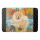 Luxuriousc dog crate pad or bath mat featuring BLUEBIRDS OF HAPPINESS - In a quaint village, autumn dressed the world in warm shades of red and gold. Among the leaves, a chow dog named Chester frolicked. His golden fur was a cosy coat against the autumn chill.
