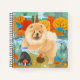 CHOOSE YOUR PAPER STYLE, COVER STYLE AND WIRE BINDING COLOR. - BLUEBIRDS OF HAPPINESS - In a quaint village, autumn dressed the world in warm shades of red and gold. Among the leaves, a chow dog named Chester frolicked. His golden fur was a cosy coat against the autumn chill.