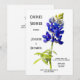 A unique "one of a kind" photograph of a Texas Bluebonnet flower with stem and leaves. A close up of the blue petals and a soft background that fades to a clean white. Complete with your wedding information on the backside of this unique wedding invitation set.