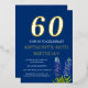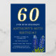 Bluebonnets watercolor floral, Texas flowers, modern, QR Code, navy blue and gold foil, stylish 60th birthday invitations. You can personalise it with your own details.