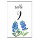 Bluebonnets Blue Floral Texas Flowers Wedding Table Number