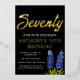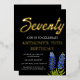 Bluebonnets watercolor floral, Texas flowers, modern, black and gold foil, stylish 70th birthday invitations. You can personalise it with your own details.