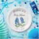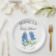 Bluebonnets, blue floral, Texas, nature watercolor paper plates. Elegant, simple calligraphy, photo Baby shower paper plates. Personalise it with your details.