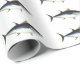 A repeating pattern of bluefin tuna illustrations appear on this wrapping paper. The largest of the tunas, the bluefin can attain weights of nearly 1500 pounds. Found in many of the world's oceans, bluefin tuna are associated with deep sea fishing, commercial fishing, and coastal communities.