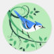 Stylised Blue Jay art on stickers with a background colour that can be changed online