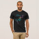 Blues Music Saxophone and Musical Notes T-Shirt. A dark saxophone with a blue glow playing a colourful rainbow wave of musical notes. A great gift for your favourite sax player, musician or blues music lover.