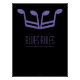 A bold, graphic music themed design with quavers forming a crown. It is captioned with blues rules. Easily edited and personalised.