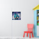 This whimsical poster features a vibrant watercolor painting of a teal sail boat surrounded by a starry night sky.
