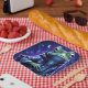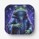 This fantasy party paper plate features a fun whimsigoth vibrant digital painting of a happy frog wizard